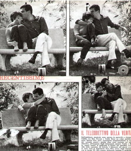 Queste foto però, sostengono eloquentemente la tesi del " grande amore ", pochè sono state scattate col teleobiettivo all'insaputa degli interessati mentre Teddy e Rita, teneri teneri, si godevano il fresco del giardino della villa della cantante ad Ariccia.